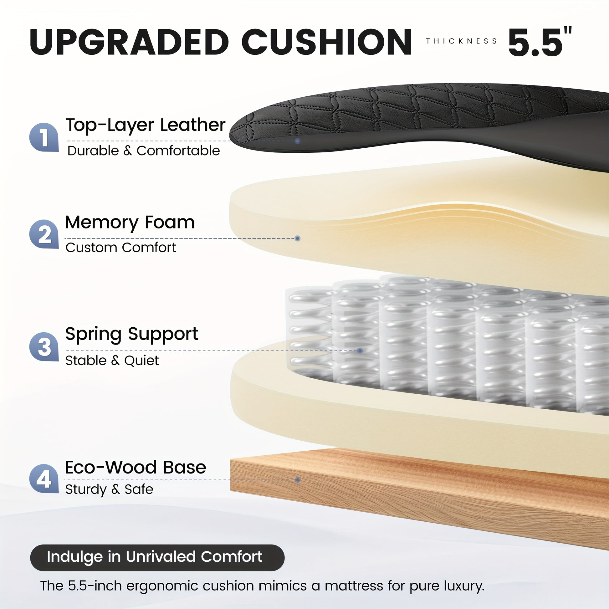 Key Features: Big & tall executive high - back leather office chair with footrest, ergonomic design, memory foam lumbar support, 360° swivel and 5 dual - wheel base.