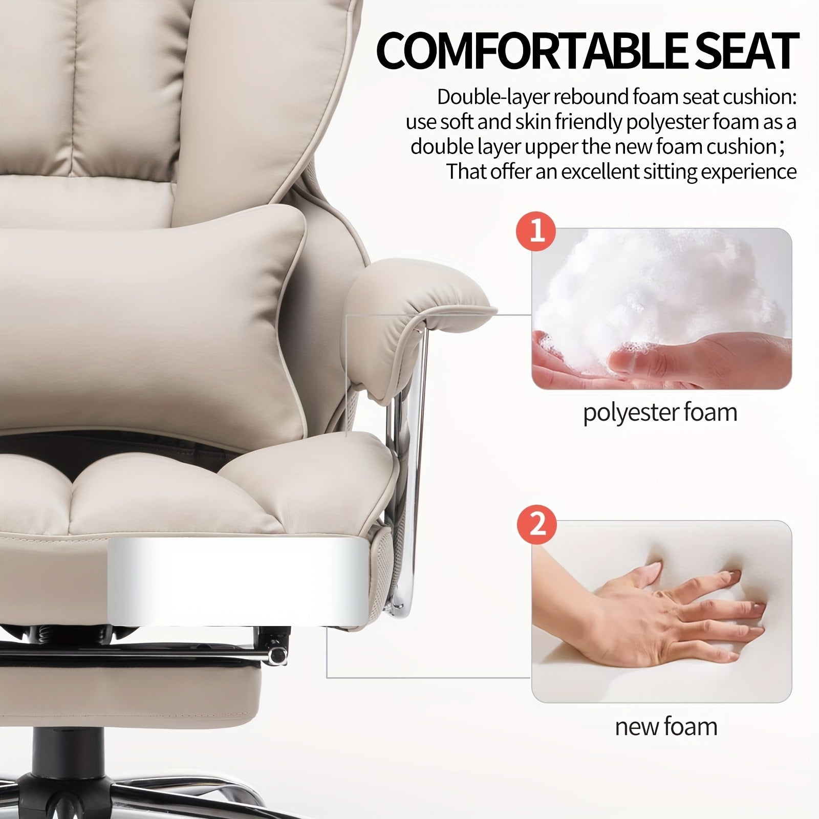 Key Features: Big & tall executive high - back leather office chair with footrest, ergonomic design, memory foam lumbar support, 360° swivel and 5 dual - wheel base.
